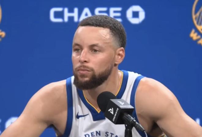 库里:第一场比赛我还是有点紧张,所以暂时无法像以前那样拼命奔跑。